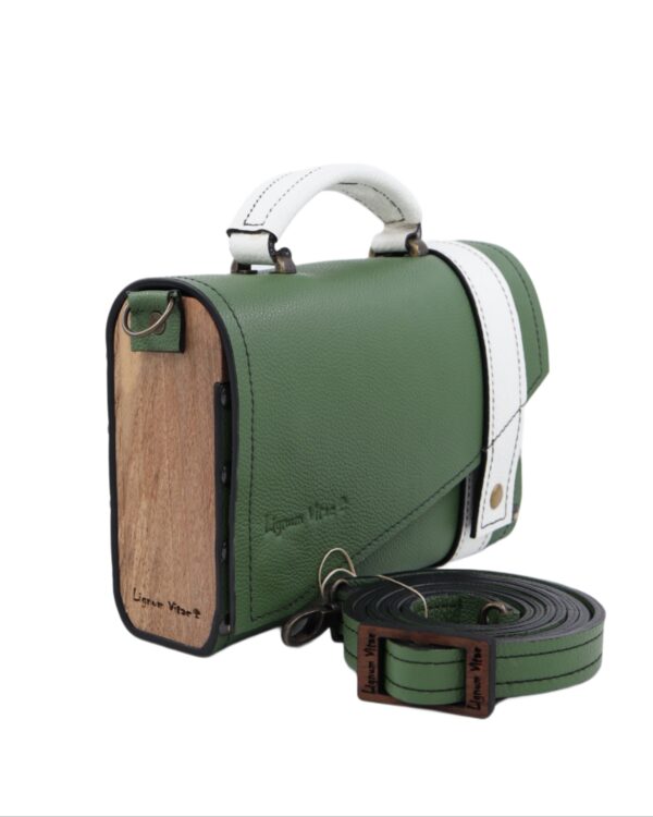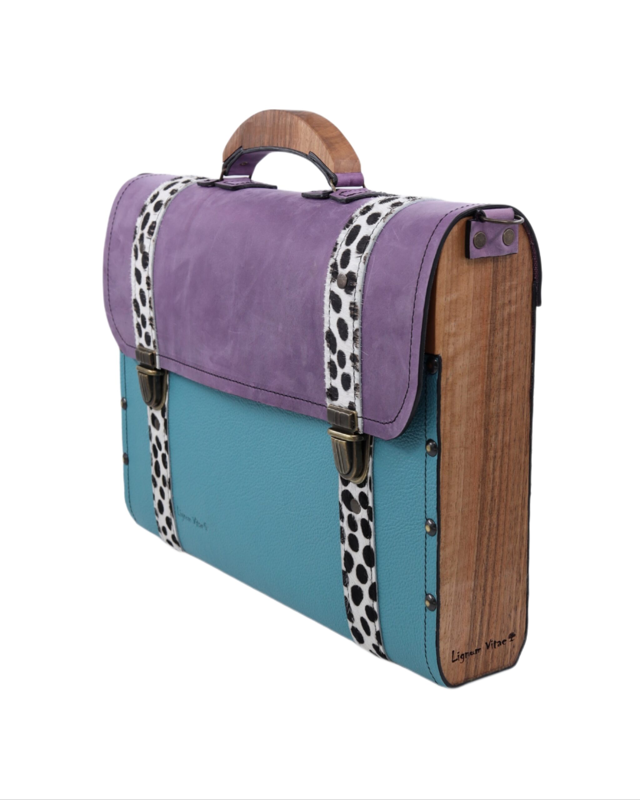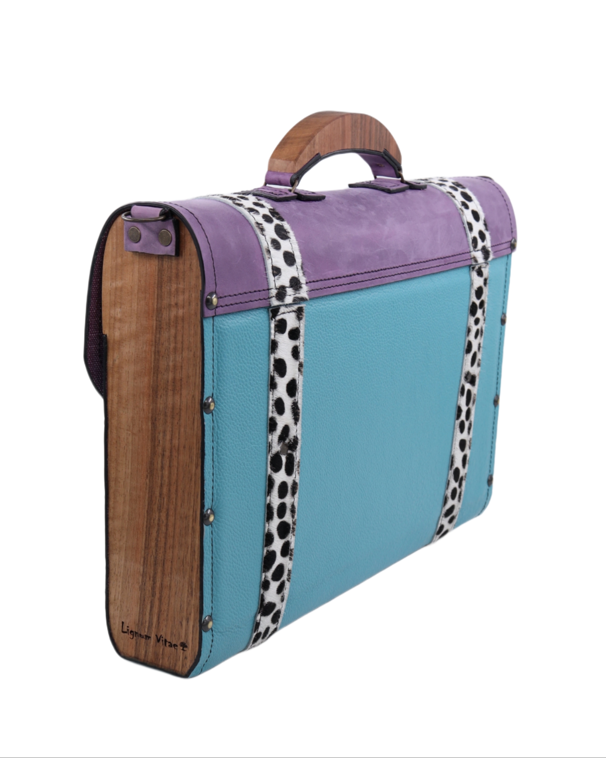 Izradjena je od najfinije, reljefne kože na donjem delu, pull-up Italijanske kože na gornjem i kože sa prirodnom dlakom kao i odabranih komada drveta oraha na stranicama i ručici. Ostali materijali su metalne bravice, alkice i ekserici.