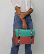 Narandžasto na donjem delu, tirkizno zeleno na gornjem i beli kaševi sa crnim tufnama.