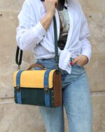 Izradjena je od najfinije, čvrste pull-up Italijanske kože na donjem delu, bušene na gonjem i prevrnute na kaiševima kao i odabranih komada drveta oraha na stranicama i ručici. Ostali materijali su metalne bravice, alkice i ekserici.