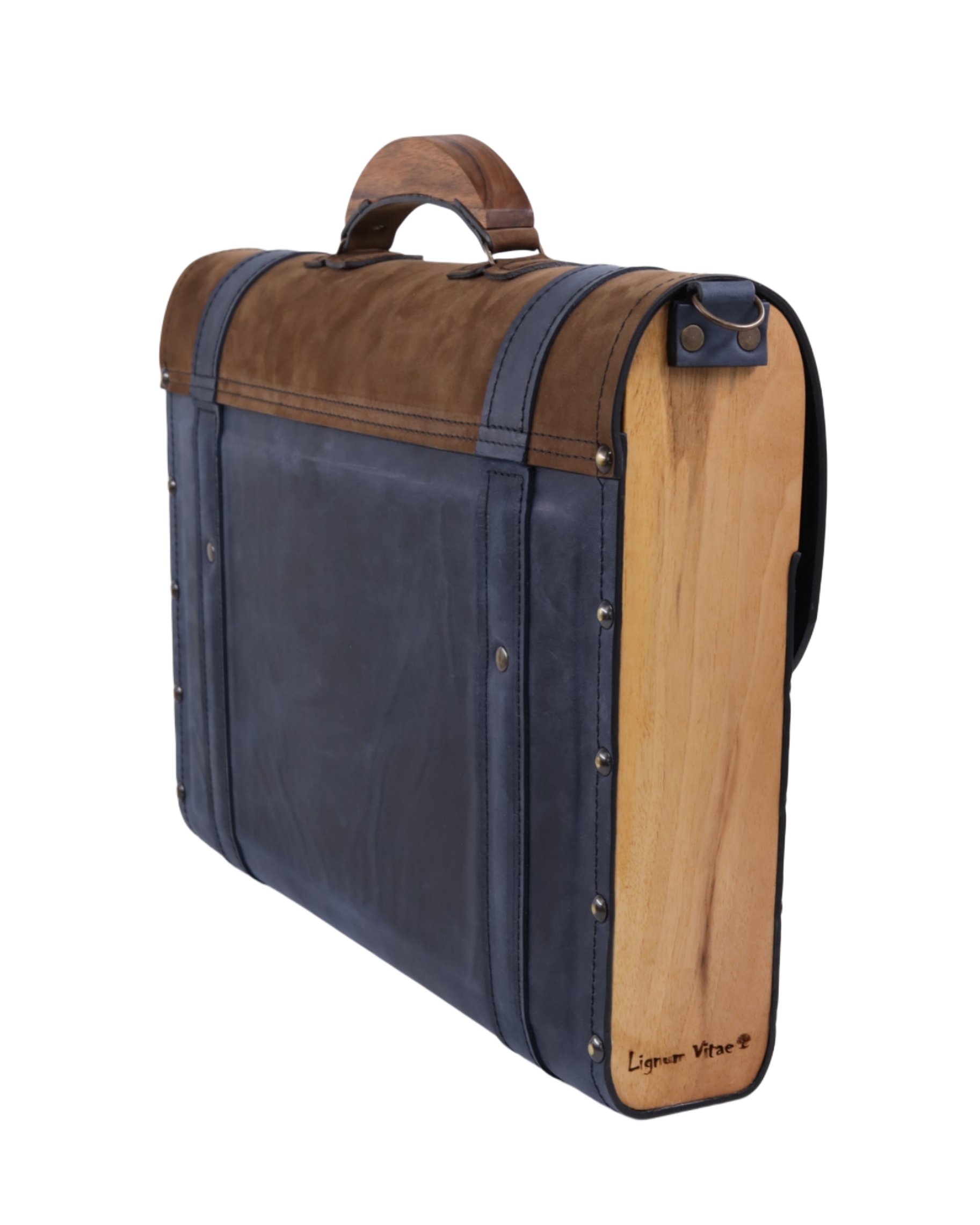 Izradjena je od najfinije, čvrste Italijanske kože i odabranih komada drveta oraha na stranicama i ručici. Ostali materijali su metalne bravice, alkice i ekserici.