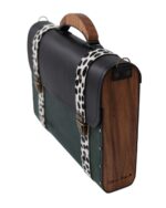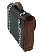 Izradjena je od najfinije, čvrste pull-up Italijanske kože na donjem delu, reljefne crne na gornjem i tufnastim kaiševima sa prirodnom dlakom kao i odabranih komada drveta oraha na stranicama i ručici. Ostali materijali su metalne bravice, alkice i ekserici.