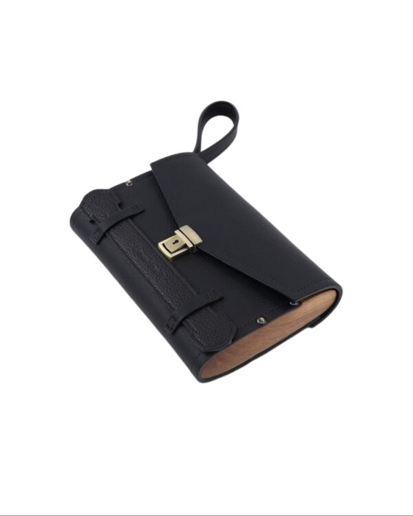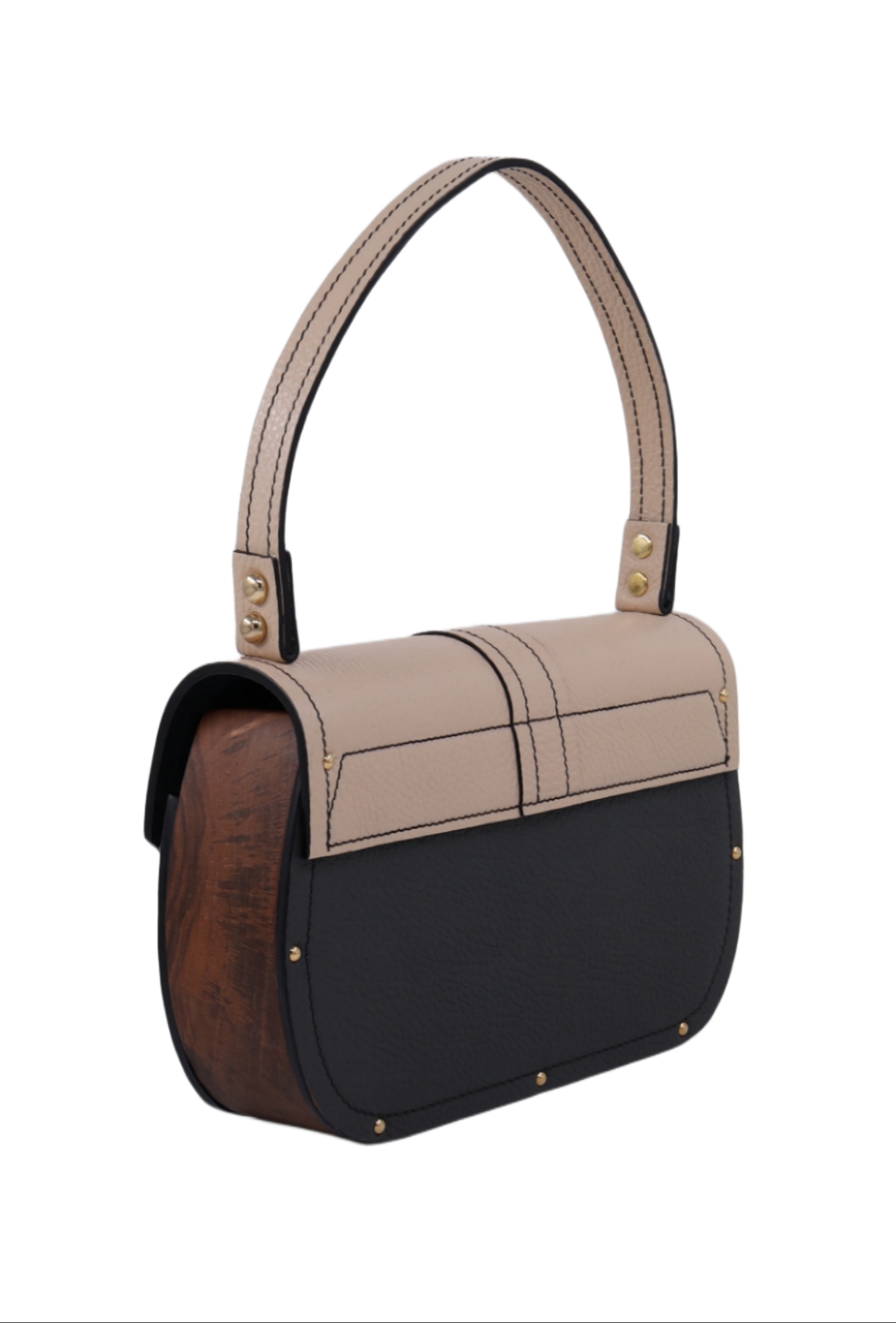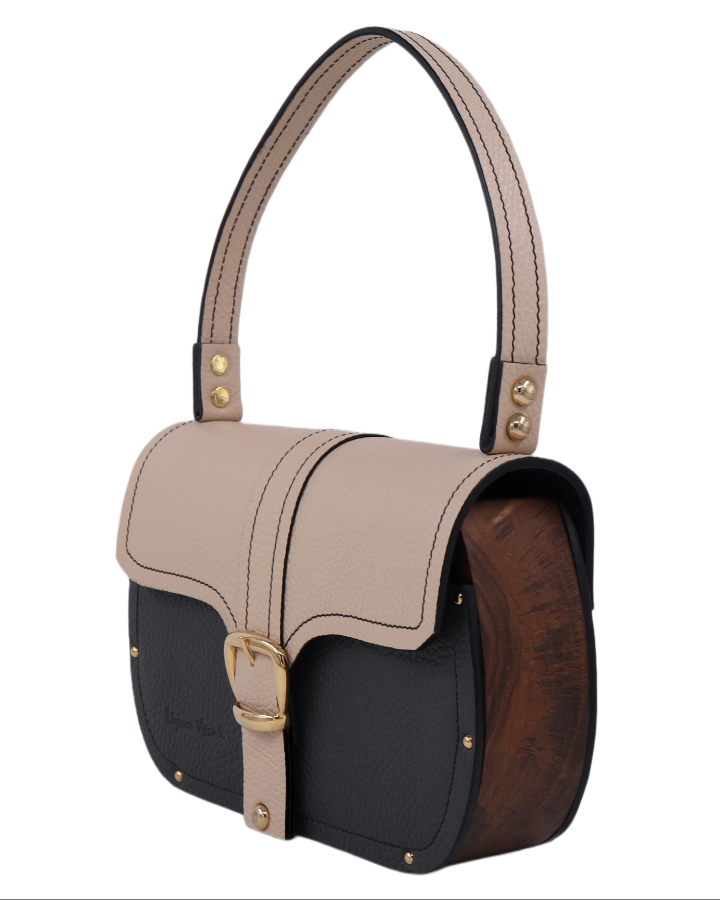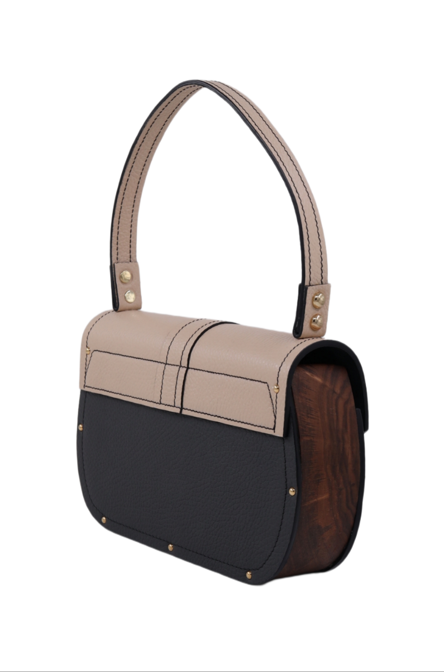 Deo naše Timeless kolekcije. Torbu Jonna krase minimalistički detalji i elegantan dizajn i sa sigurnošću će biti omiljen detalj bilo da želiš da je uklopiš u svoj elegantni stil ili da ti u casual varijanti bude modni detalj. Izradjena je od prirodne kože na prednjoj i zadnjoj strani i drveta oraha iz jednog komada. Unutrašnjost je takodje obložena prirodnom kožom. Poseduje kaiš/ručku i može se nositi na podlaktici, u ruci ili pod miškom. Zatvaranje je pomoću magnetne bravice i „fake“ kaišne šnale. Metalni delovi presvučeni su 24karatnom pozlatom.