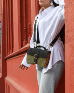 Deo naše timeless kolekcije. Maxima, starija sestra torbe Minima tu je za više stvari i za situacije kada torbi Minima daješ slobodan dan. Neobičan oblik i elegantni metalni detalji sa 24karatnom pozlatom čine ovu torbicu jedinstvenim modnim komadom. Šivena ručica je tu tako da se može nositi u ruci ili na ramenu i crossbody pomoću širokog kaiša sa šnalom za podešavanje dužine.