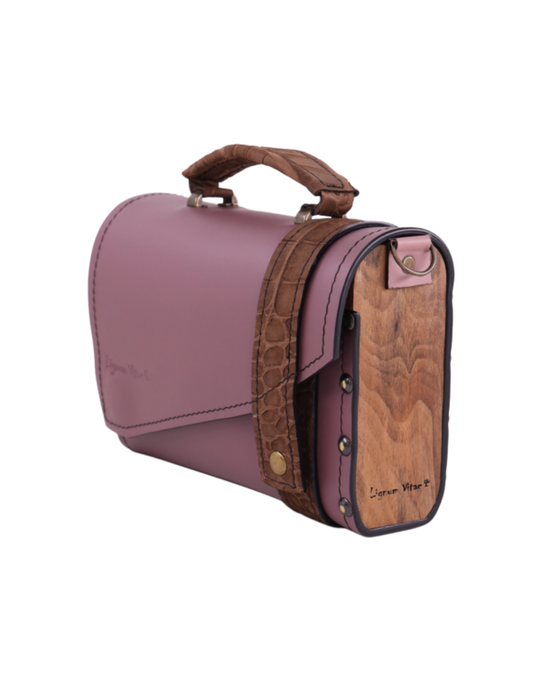 Za sve ljubitelje malih torbica Vanessa je pravi izbor. Izradjena je od čvrste kože i finih komada orahovog drveta u veličini dovoljnoj za vaše osnovne stvari. Delikanti detalji u vidu kaišića sa strane I kombinacija koža-lanac na kaišu čini je univerzalnim detaljem za više kombinacija.