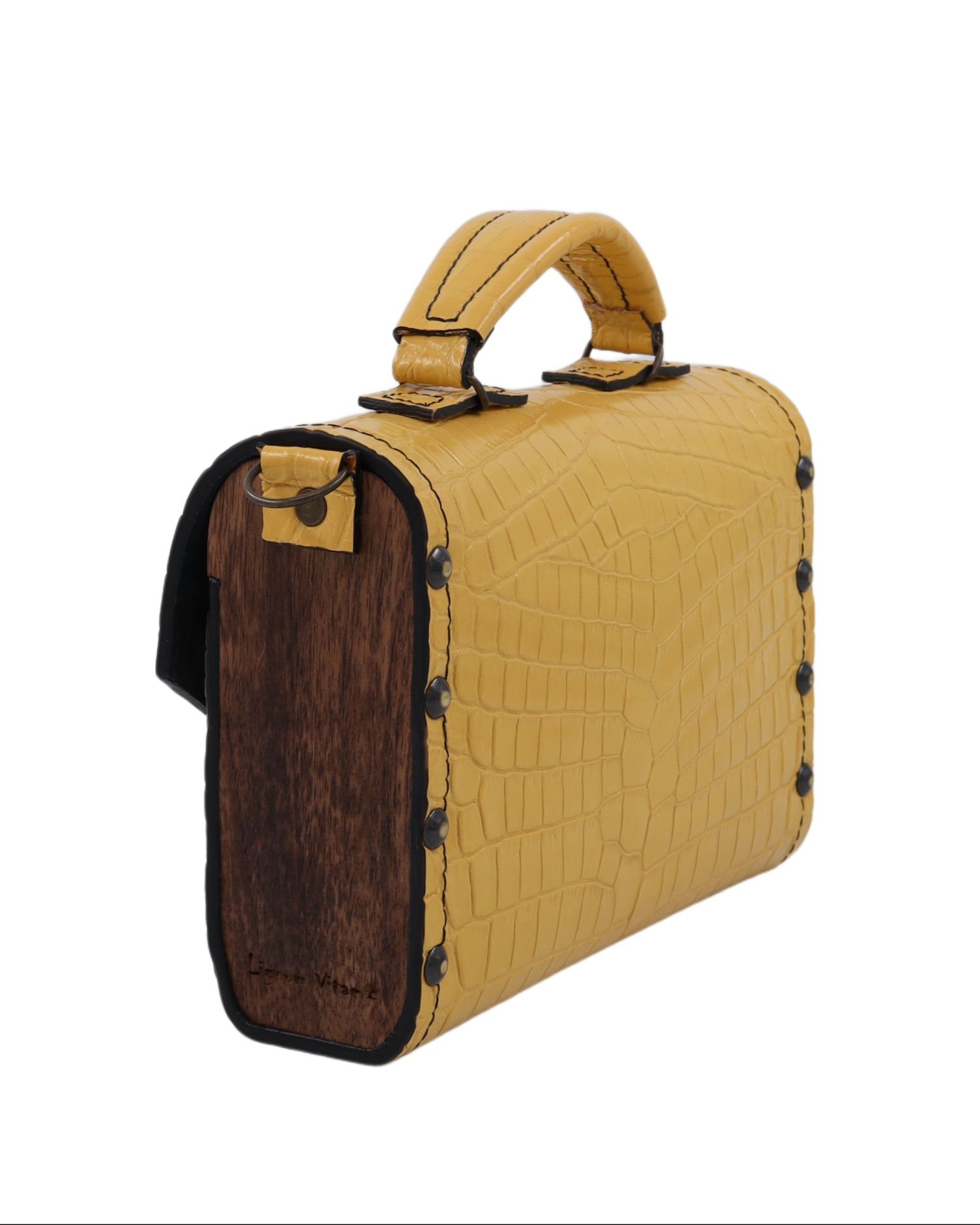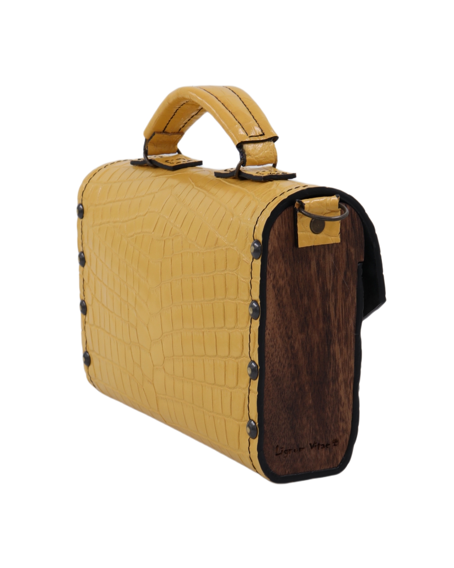 Za sve ljubitelje malih torbica Vanessa je pravi izbor. Izradjena je od čvrste kože i finih komada orahovog drveta u veličini dovoljnoj za vaše osnovne stvari. Udobna kožna ručica idealna je za nošenje torbe u ruci a za komfor prinošenju na ramenu, tu je celi kožni kaiš sa drvenom šnalom za podešavanje dužine.