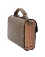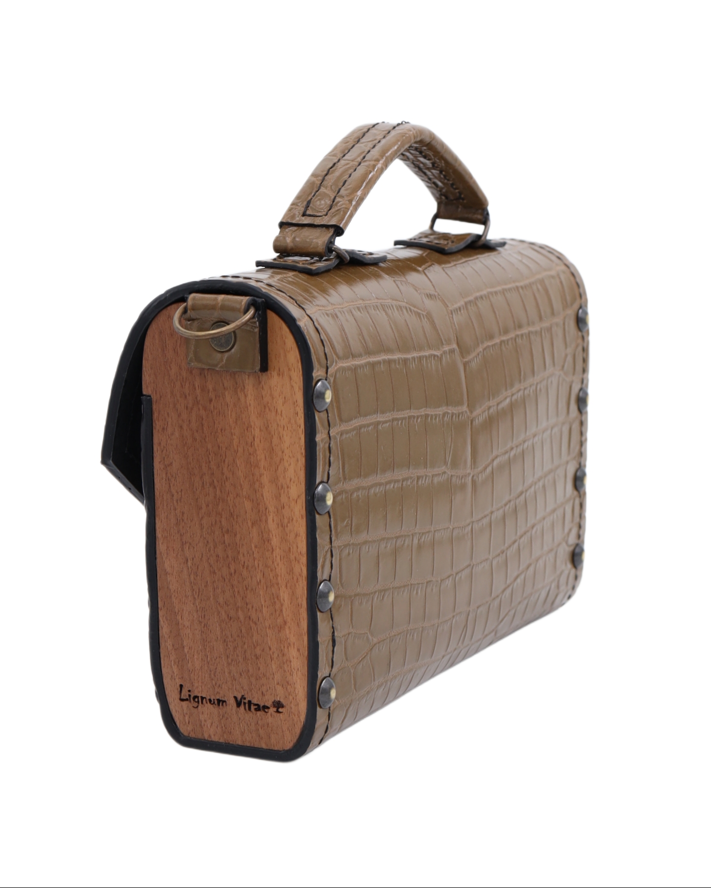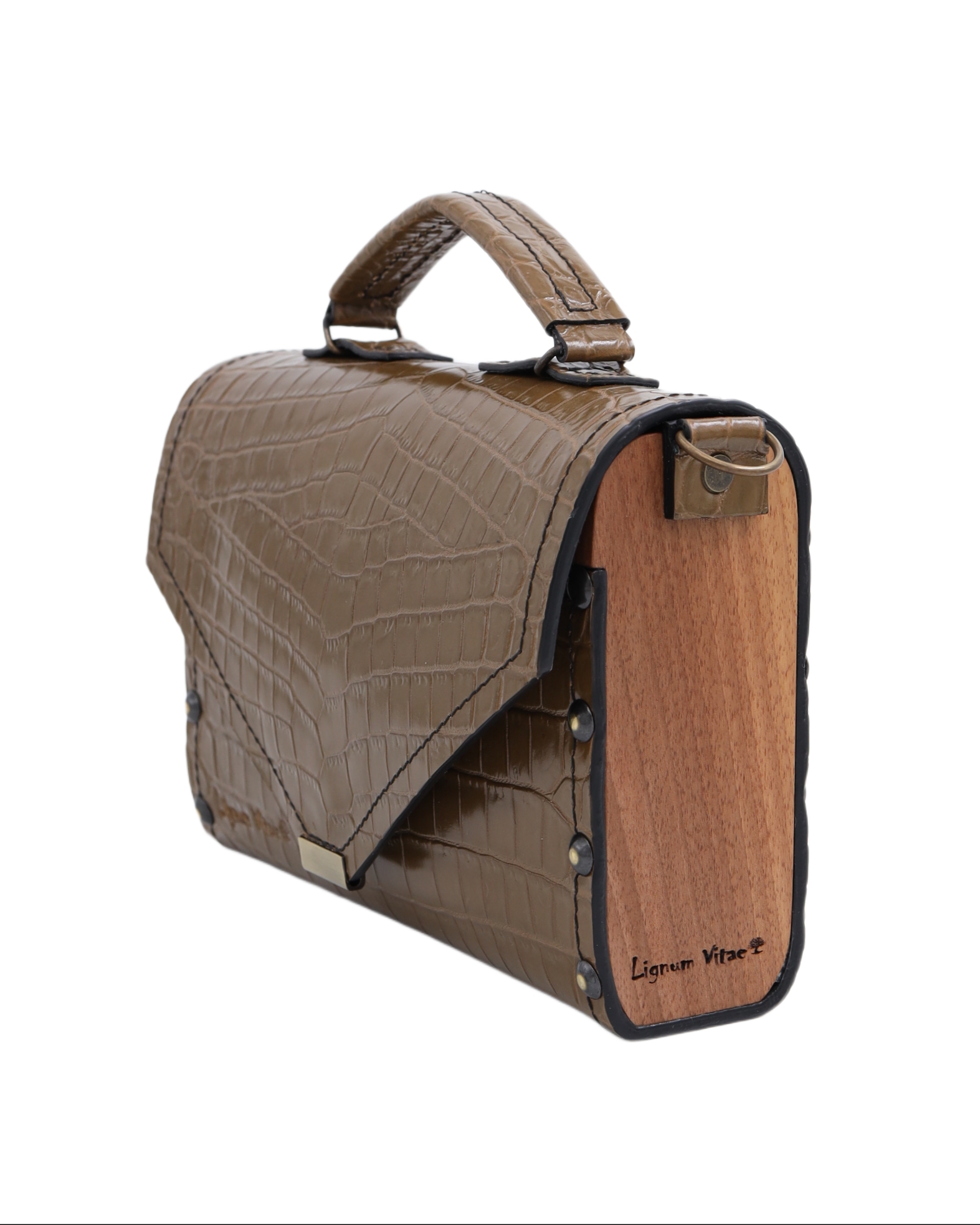Za sve ljubitelje malih torbica Vanessa je pravi izbor. Izradjena je od čvrste kože i finih komada orahovog drveta u veličini dovoljnoj za vaše osnovne stvari. Udobna kožna ručica idealna je za nošenje torbe u ruci a za komfor prinošenju na ramenu, tu je celi kožni kaiš sa drvenom šnalom za podešavanje dužine.
