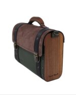 Izradjena je od najfinije, glatke Italijanske kože na donjem delu, brušene na gornjem i reljefme na kaiševima i odabranih komada drveta oraha na stranicama i ručici. Ostali materijali su metalne bravice, alkice i ekserici.