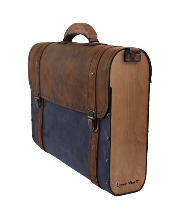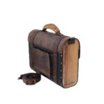 Izradjena je od najfinije, čvrste pull-up Italijanske kože na gornjem delu i kaiševima, reljefno na donjem kao i odabranih komada drveta oraha na stranicama i ručici. Ostali materijali su metalne bravice, alkice i ekserici.
