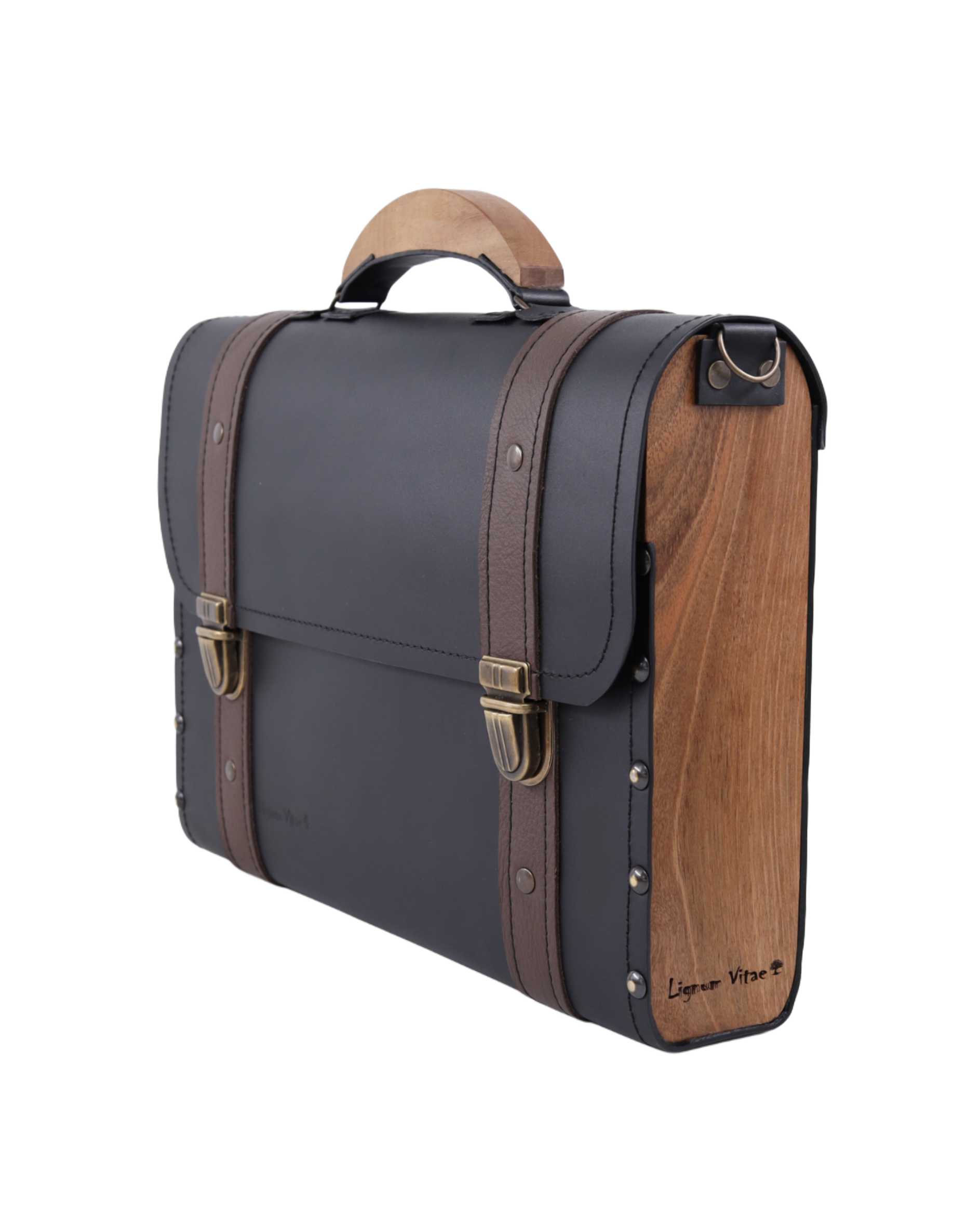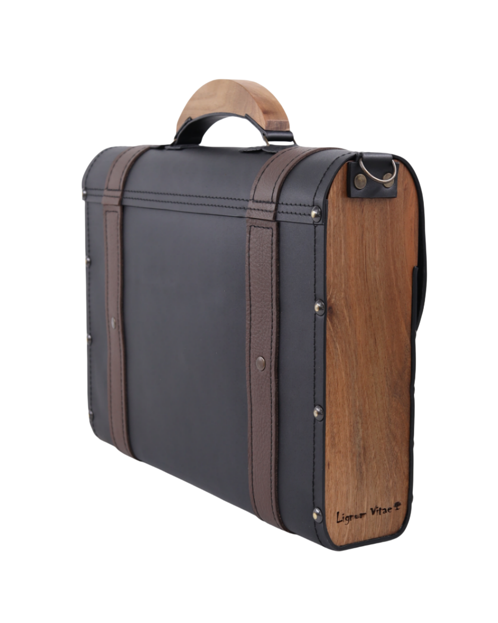 Izradjena je od najfinije, čvrste Italijanske kroko kože i odabranih komada drveta oraha na stranicama i ručici. Ostali materijali su metalne bravice, alkice i ekserici.