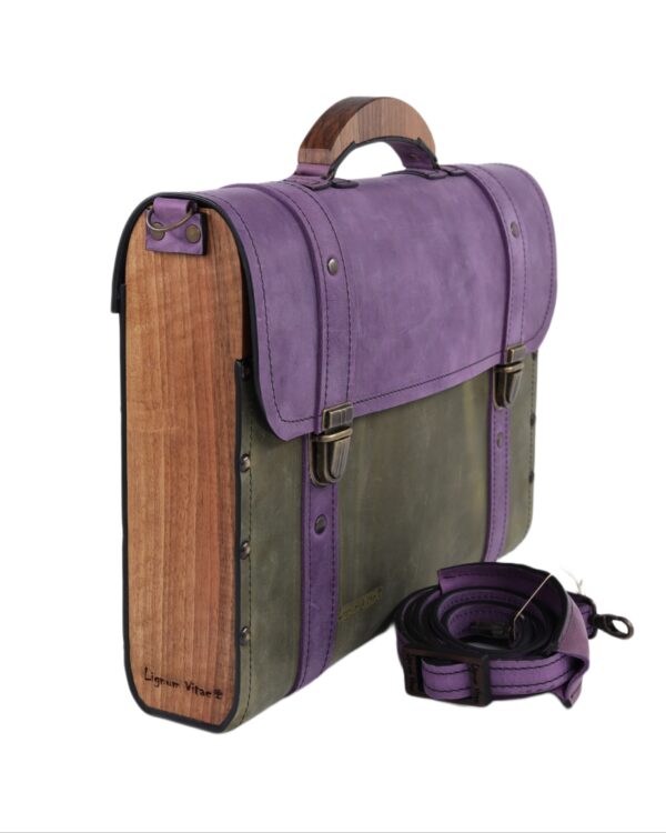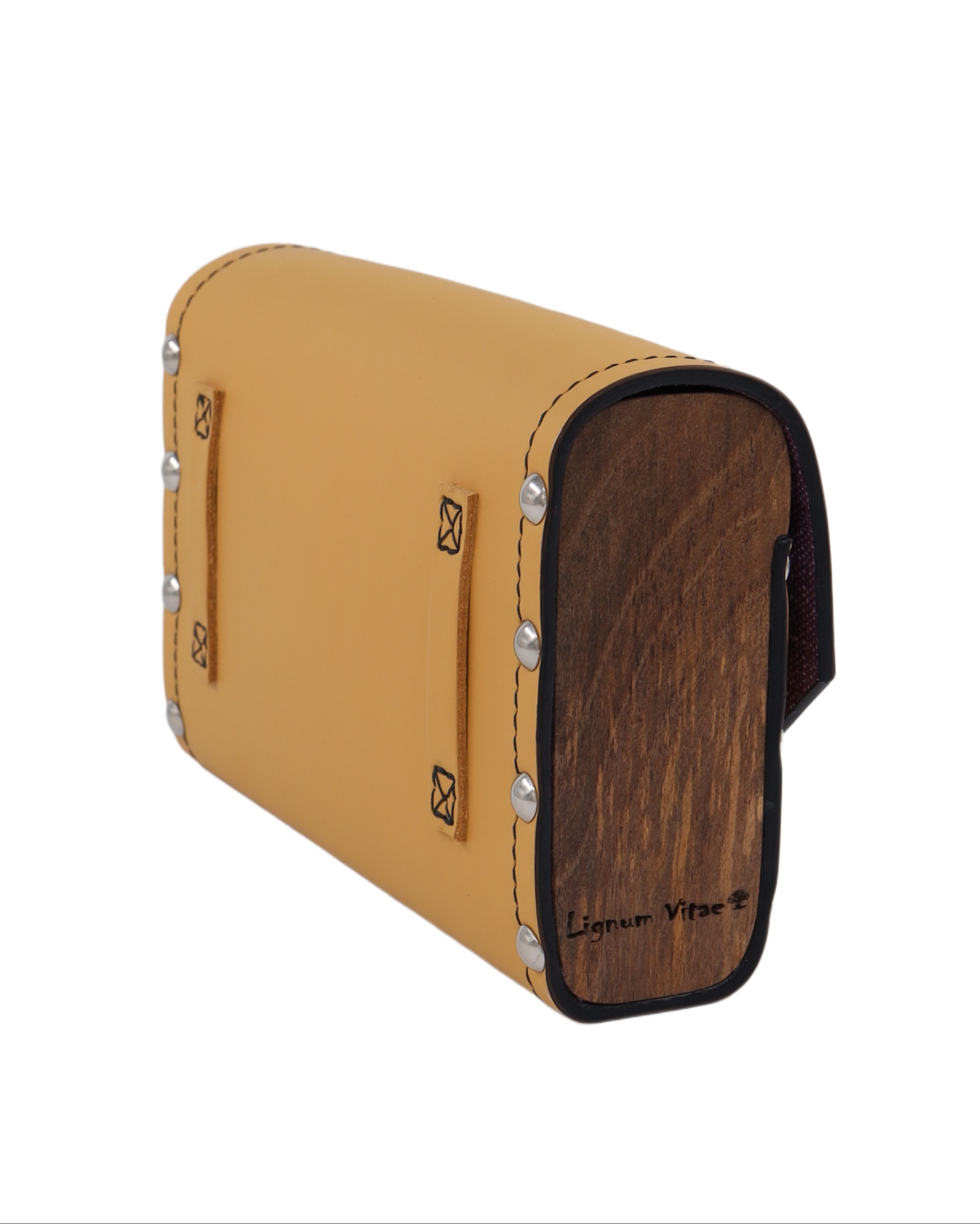Izradjena je od debele italijanske kože i odabranih komada oraha na stranicama. Ostali materijali su metalna bravica, alkice, ekserici.
