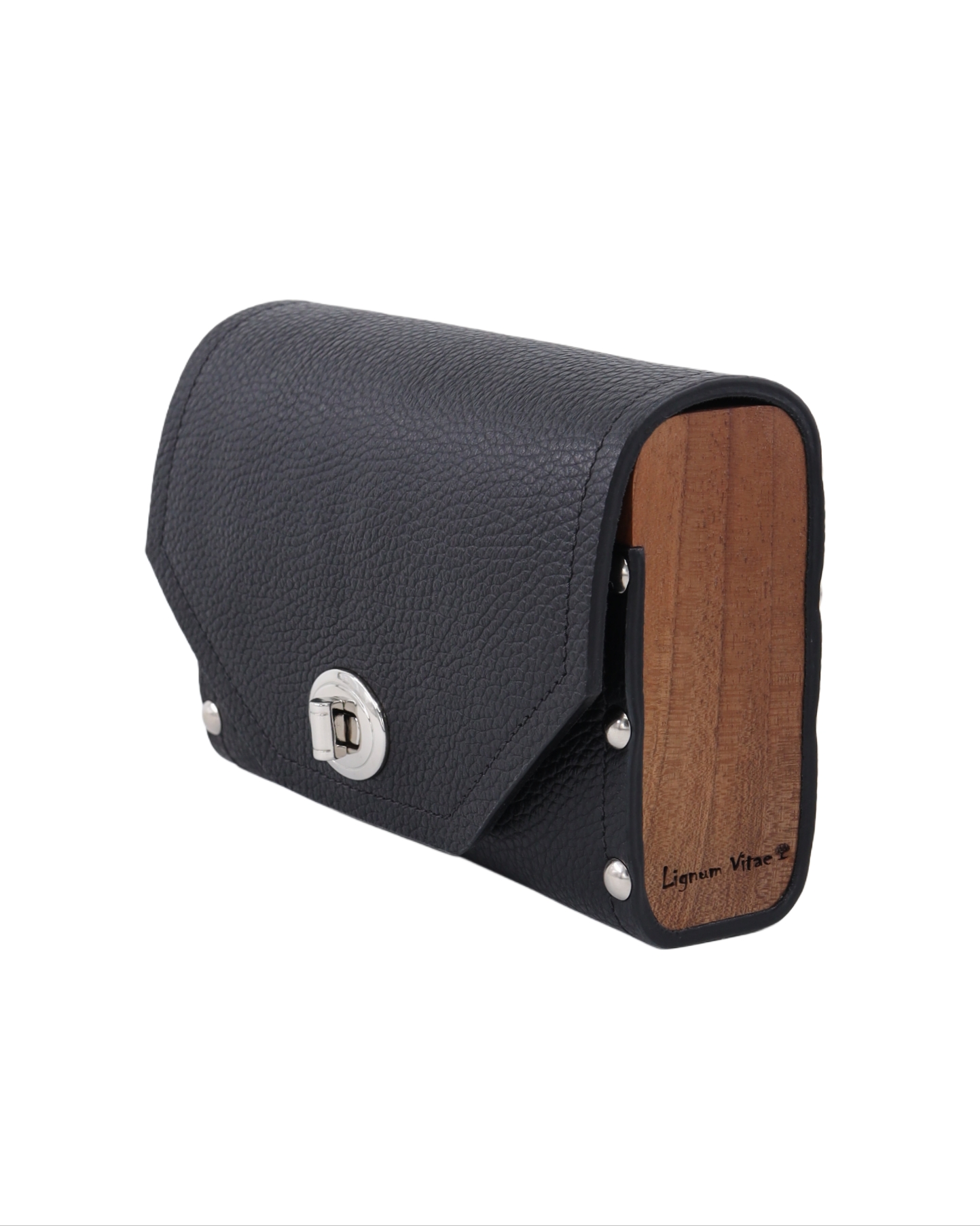 Izradjena je od reljefne italijanske kože i odabranih komada oraha na stranicama. Ostali materijali su metalna bravica, alkice, ekserici.