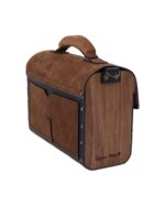 Izradjena je od cvrste kože na donjem delu i pull-up Italijanske kože kao i odabranih komada drveta oraha na stranicama i ručici. Ostali materijali su metalne bravice, alkice i ekserici.