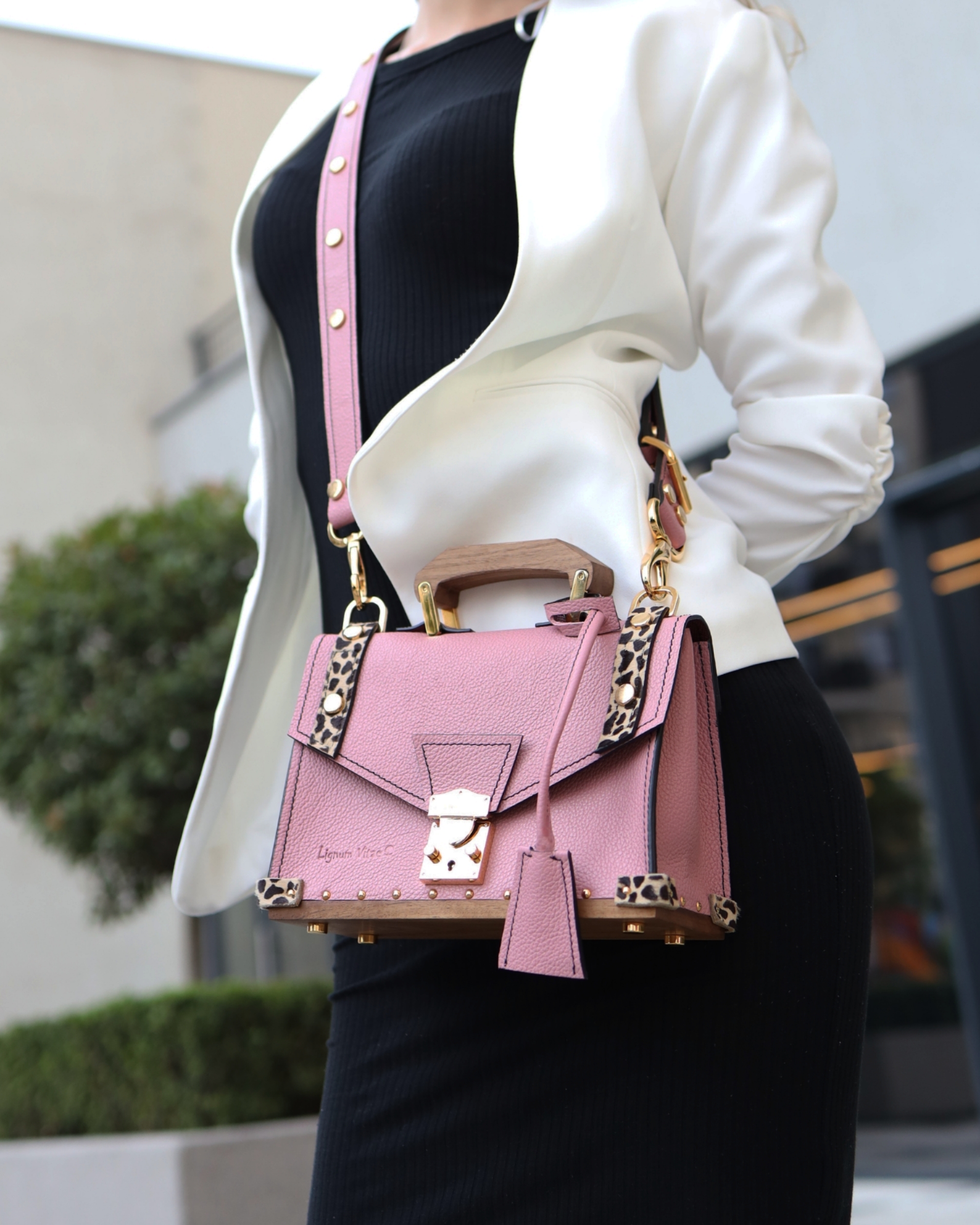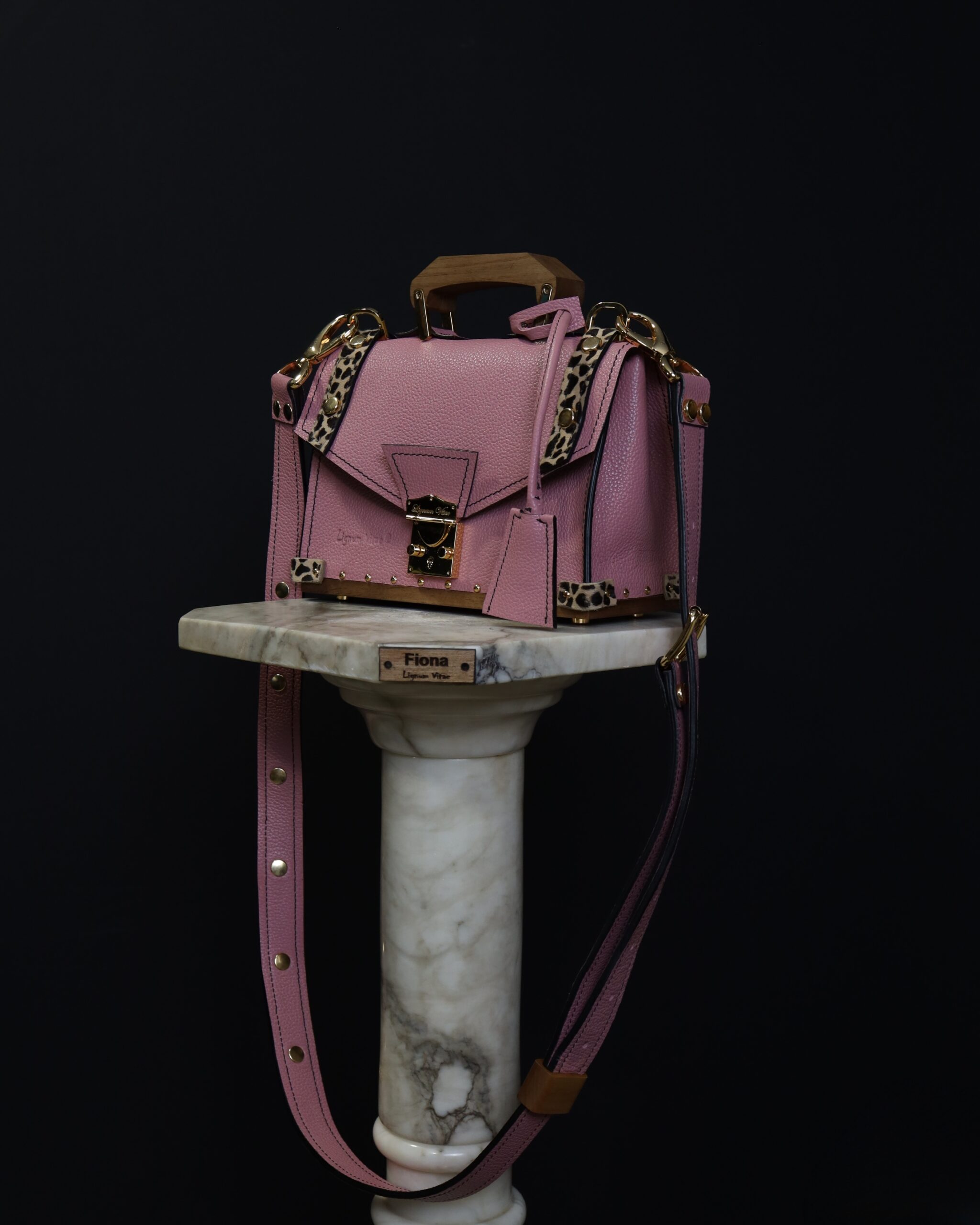 Deo naše Timeless kolekcije. Torba Fiona je predstavlja proizvod gde smo posebnu pažnju posvetili svakom detalju. U ovom slučaju, dno torbe, šnala za kaiš, kao i neobična ručica izrađeni su od drveta. Za njenu izradu, svi metalni delovi su za nas ručno rađeni u Italiji. Bravica kao centralni deo torbe, ima specijalan mehanizam sa ključem i možete je zaključati. Na taj način vaše stvari nikada nisu bile bezbednije. Svi metalni delovi su presvučeni pravom 24karatnom pozlatom. Unutrašnjost torbe poseduje pregradu sa rajsfešlusom po sredini torbe, kao i džepiće za kartice na njoj. U par poteza možete skratiti ili produžiti kaiš kako bi stajala prema vašem ukusu.