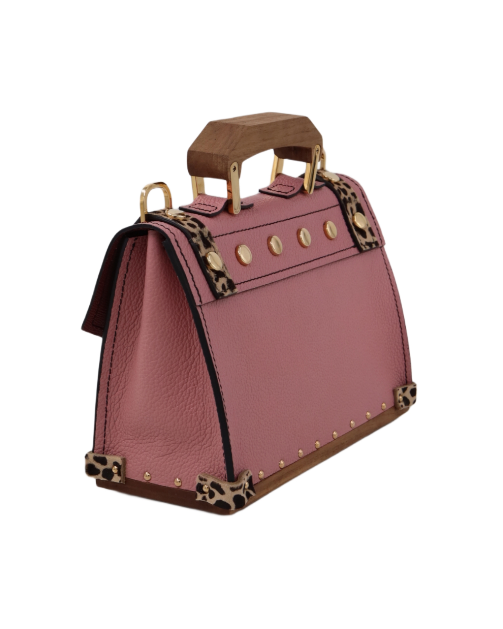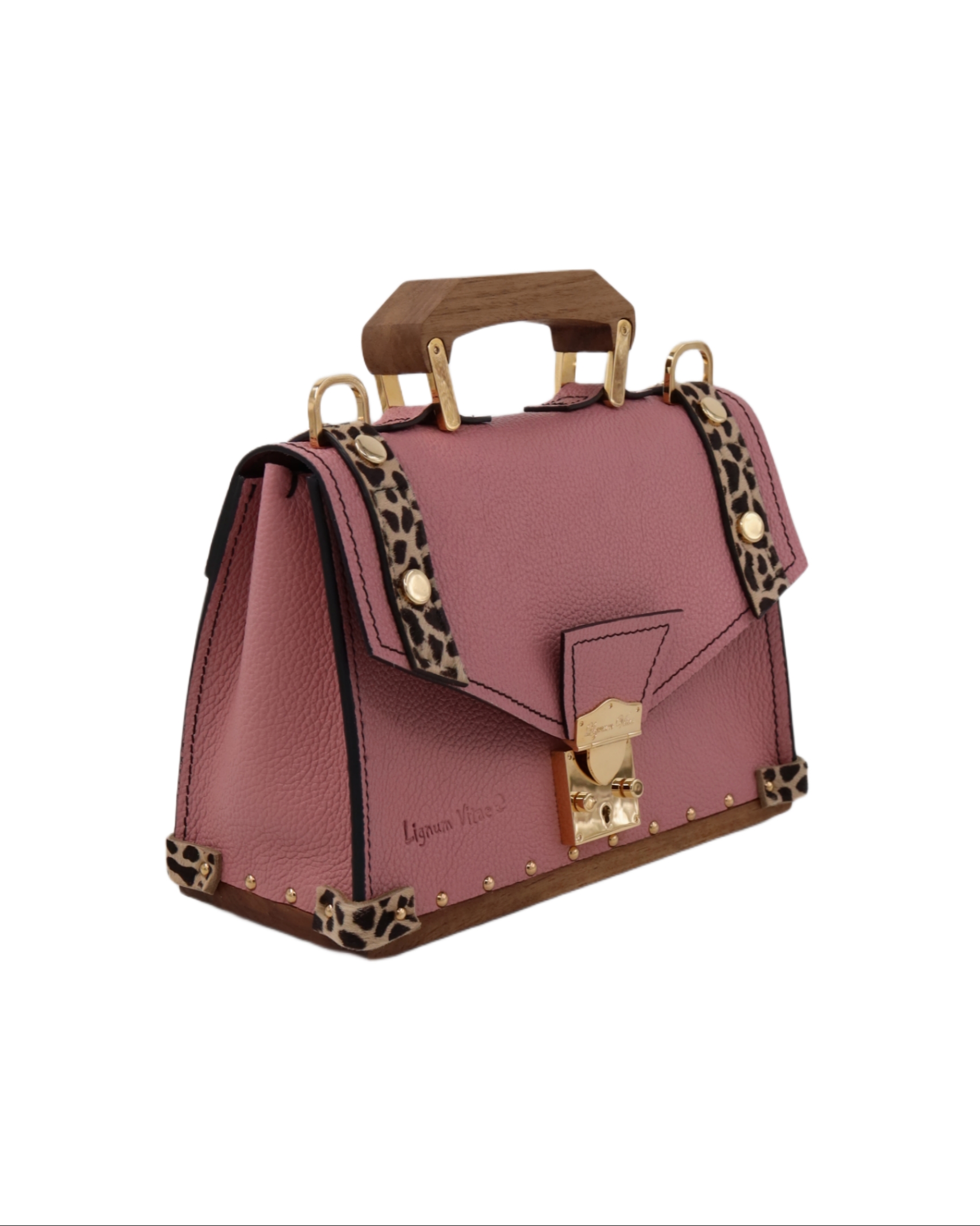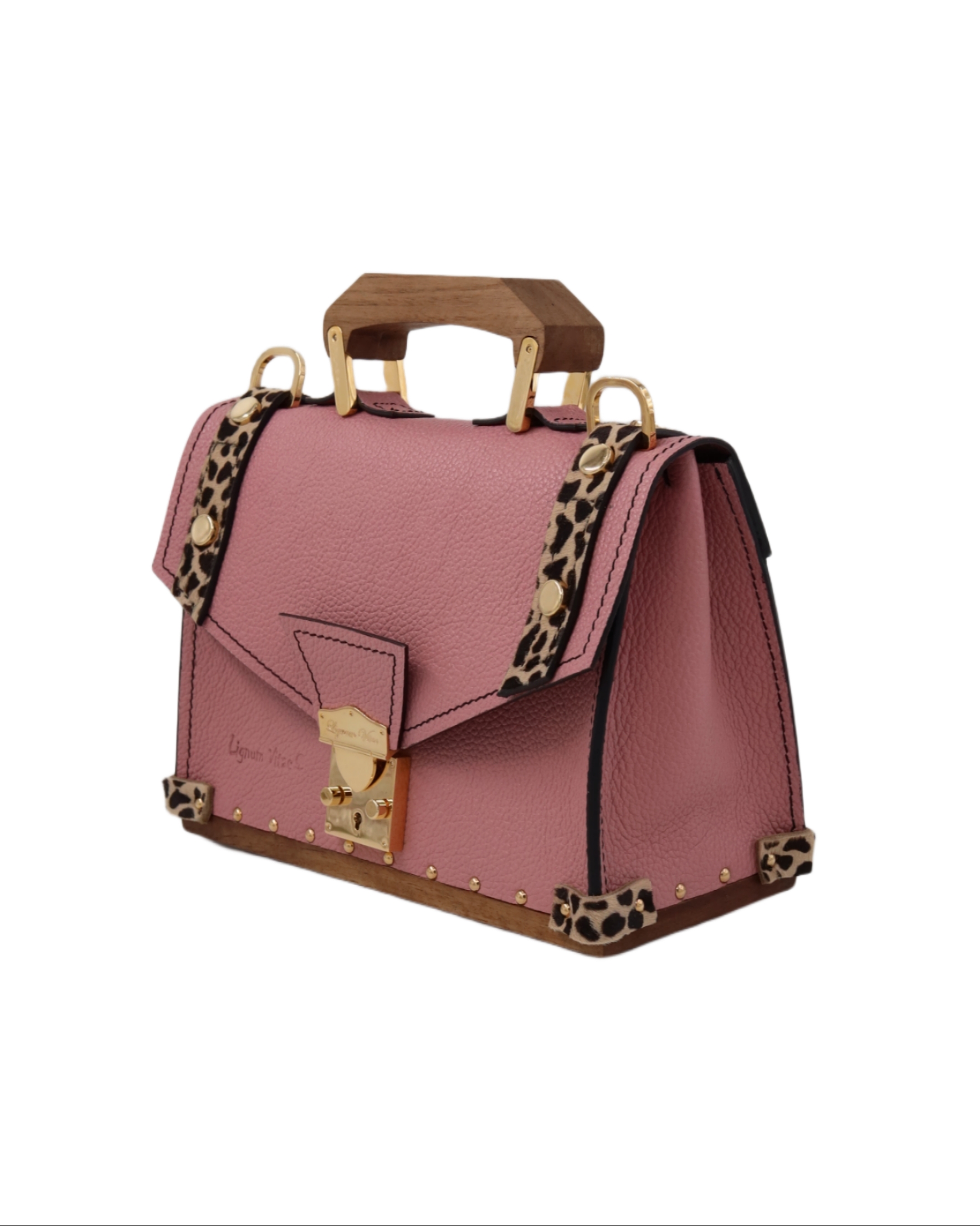 Izradjena je od najfinije, reljefne Italijanske kože obostrano postavljene i drveta oraha na dnu, ručici I šnali na kaišu. Ostali materijali su metalna bravica, šnala, karabinjeri, alke i ekserici presvučeni 24karatnim zlatom.