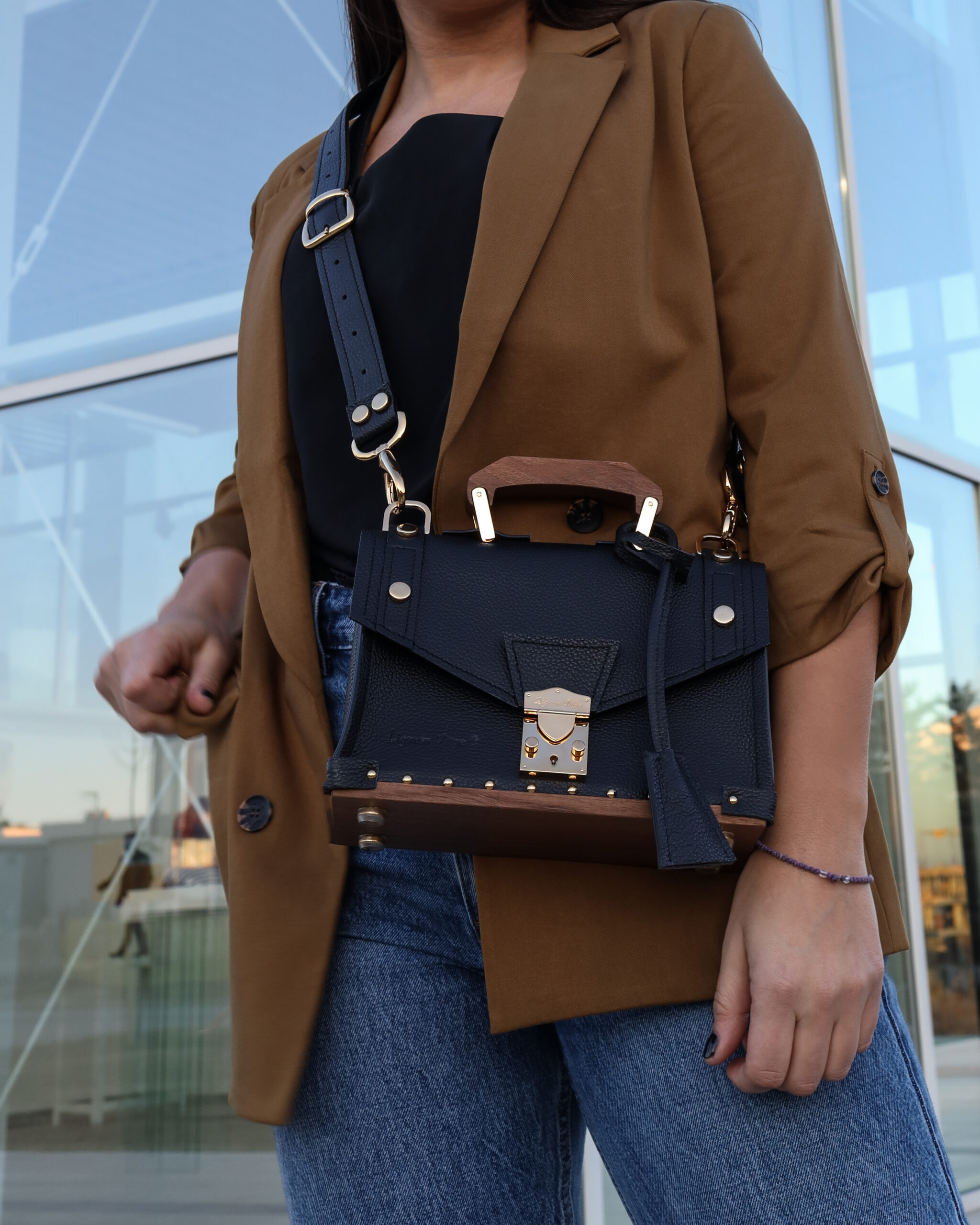 Deo naše Timeless kolekcije. Torba Fiona je predstavlja proizvod gde smo posebnu pažnju posvetili svakom detalju. U ovom slučaju, dno torbe, šnala za kaiš, kao i neobična ručica izrađeni su od drveta. Za njenu izradu, svi metalni delovi su za nas ručno rađeni u Italiji. Bravica kao centralni deo torbe, ima specijalan mehanizam sa ključem i možete je zaključati. Na taj način vaše stvari nikada nisu bile bezbednije. Svi metalni delovi su presvučeni pravom 24karatnom pozlatom. Unutrašnjost torbe poseduje pregradu sa rajsfešlusom po sredini torbe, kao i džepiće za kartice na njoj. U par poteza možete skratiti ili produžiti kaiš kako bi stajala prema vašem ukusu.