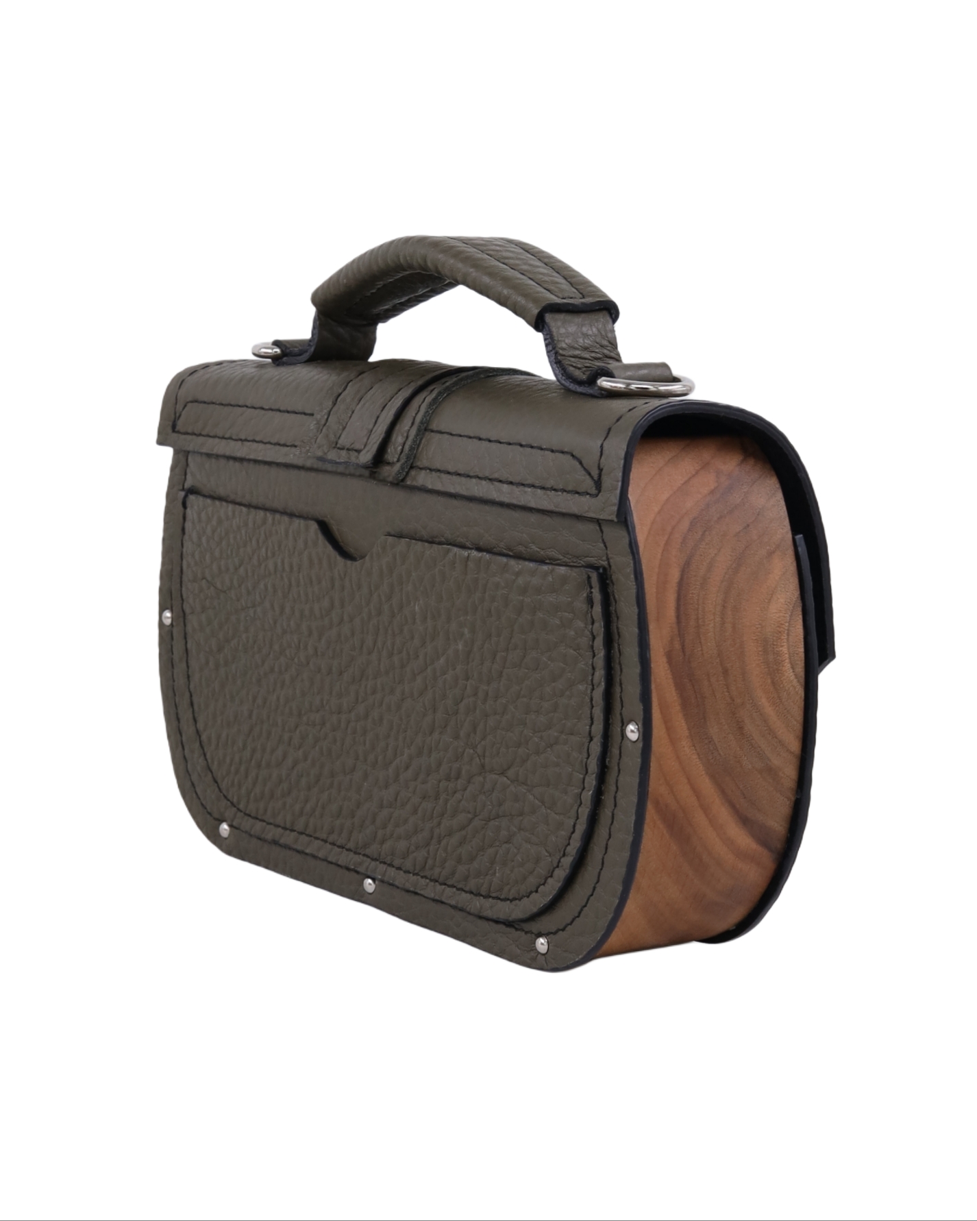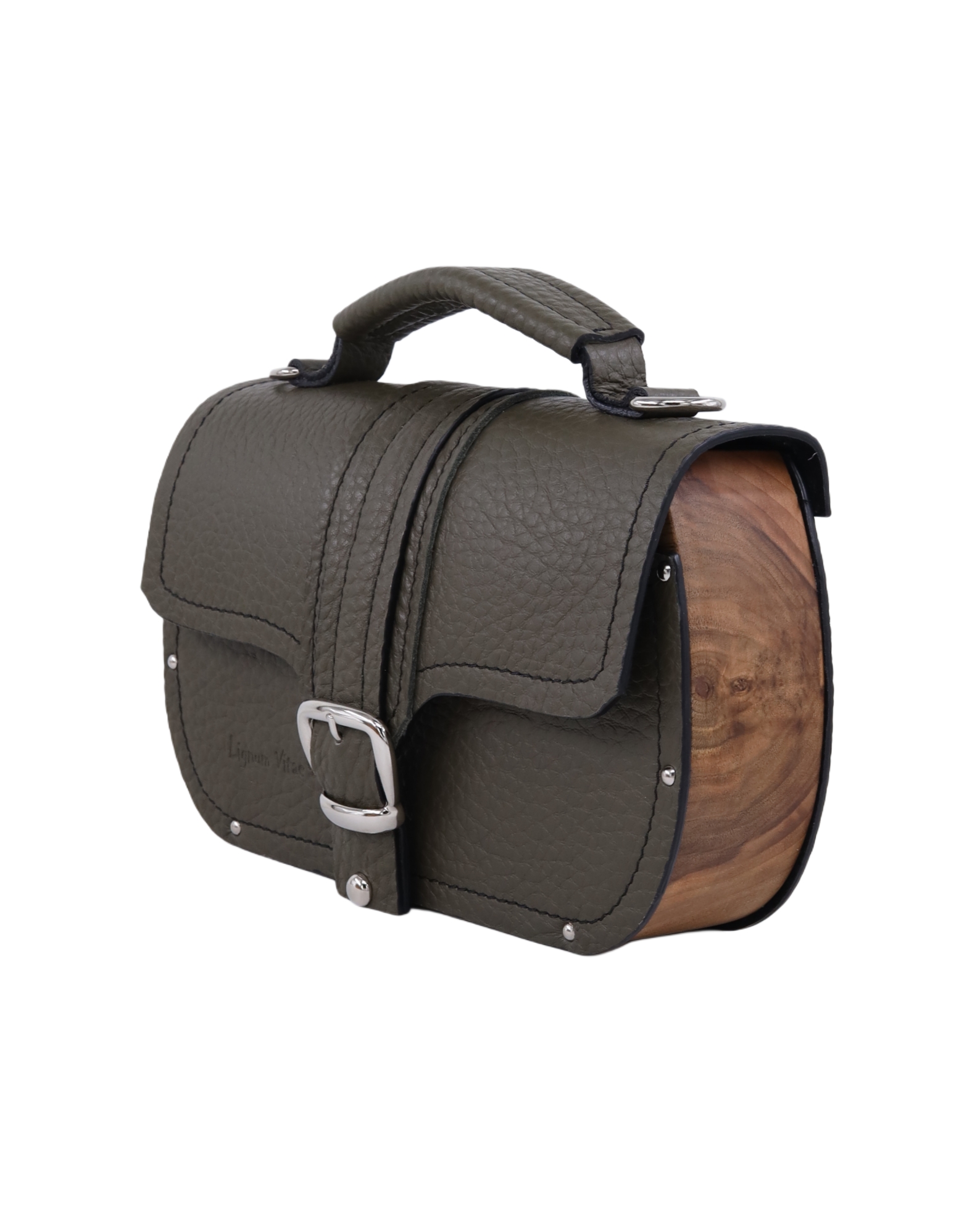 Deo naše timeless kolekcije. Torbu Jonna krase minimalistički detalji i elegantan dizajn i sa sigurnošću će biti omiljen detalj bilo da želiš da je uklopiš u svoj elegantni stil ili da ti u casual varijanti bude modni detalj. Izradjena je od prirodne kože na prednjoj i zadnjoj strani i drveta oraha iz jednog komada. Unutrašnjost je takodje obložena prirodnom kožom. Na ledjima torbe sa spoljne strane ima dzep za telefon što doprinosi praktičnosti torbe. Poseduje podešavajući kaiš za nošenje na ramenu ili crossbody. Takodje, poseduje I kratku kožnu ručicu i može se nositi i u ruci,. Zatvaranje je pomoću magnetne bravice i „fake“ kaišne šnale. Metalni delovi presvučeni su 24karatnom pozlatom.