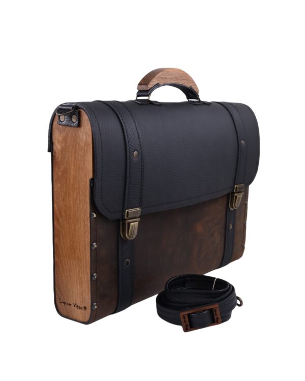 Izradjena je od reljefne Italijanske kože i komada drveta oraha. Ostali materijali su metalna bravica, šnala i ekserici presvučeni 24karatnim zlatom.