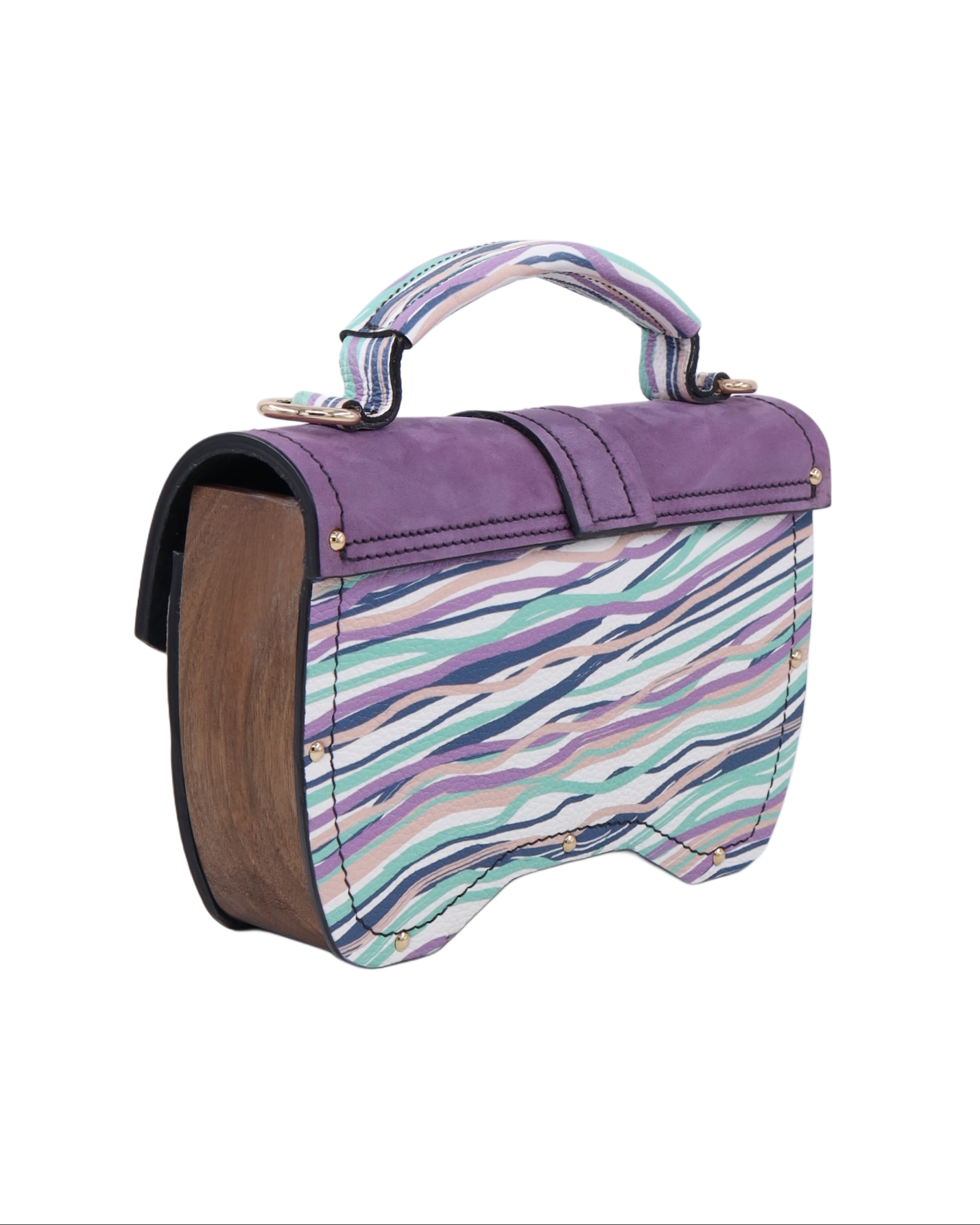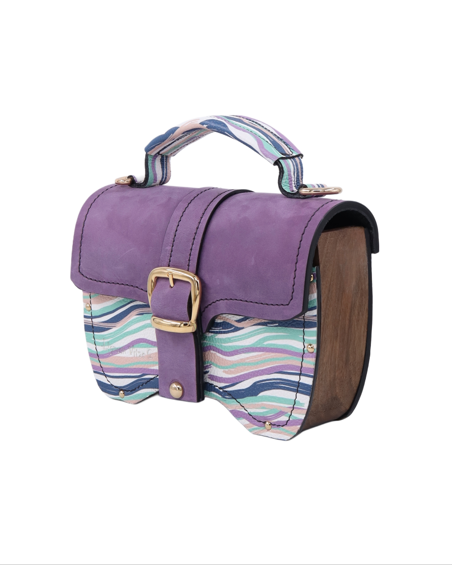 Deo naše timeless kolekcije. Minima, kao sto samo ime kaže, je mala torbice za osnovne stvari i za situacije kada želiš što manje stvari sa sobom i detalj koji će tvoj stil učiniti jedinsvenim. Neobičan oblik i elegantni metalni detalji sa 24karatnom pozlatom čine ovu torbicu jedinstvenim modnim komadom. Šivena ručica je tu tako da se može nositi u ruci ili na ramenu i crossbody pomoću kaiša sa drvenom šnalom za podešavanje dužine.