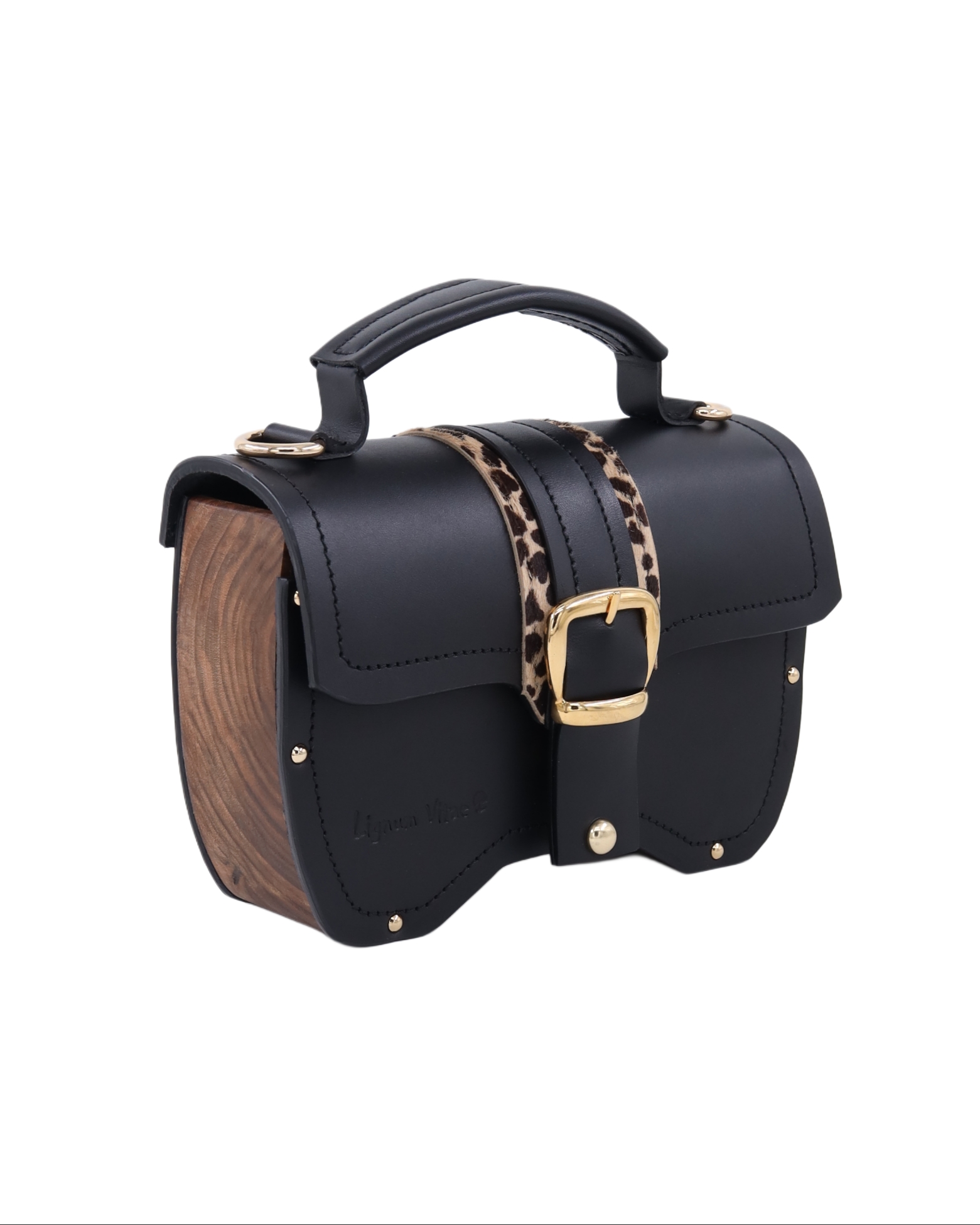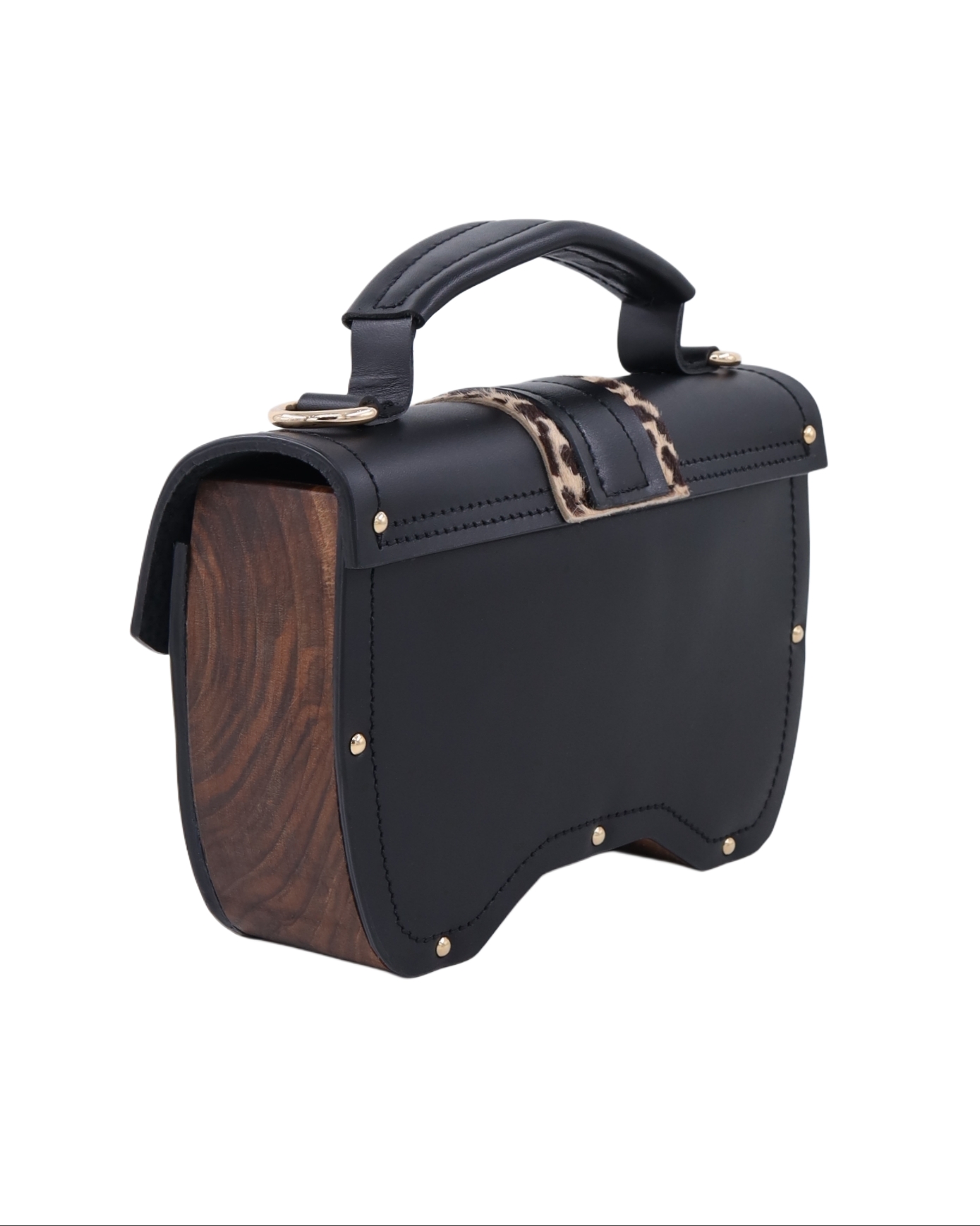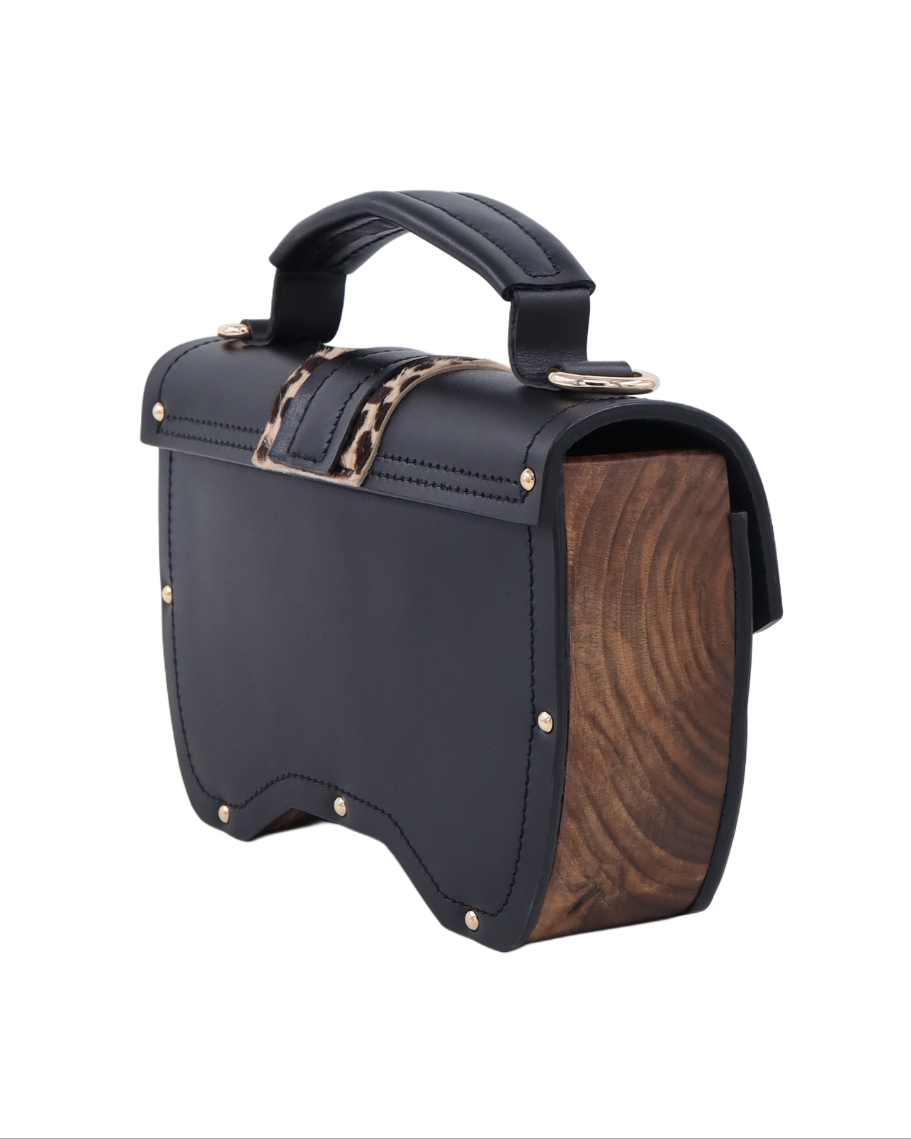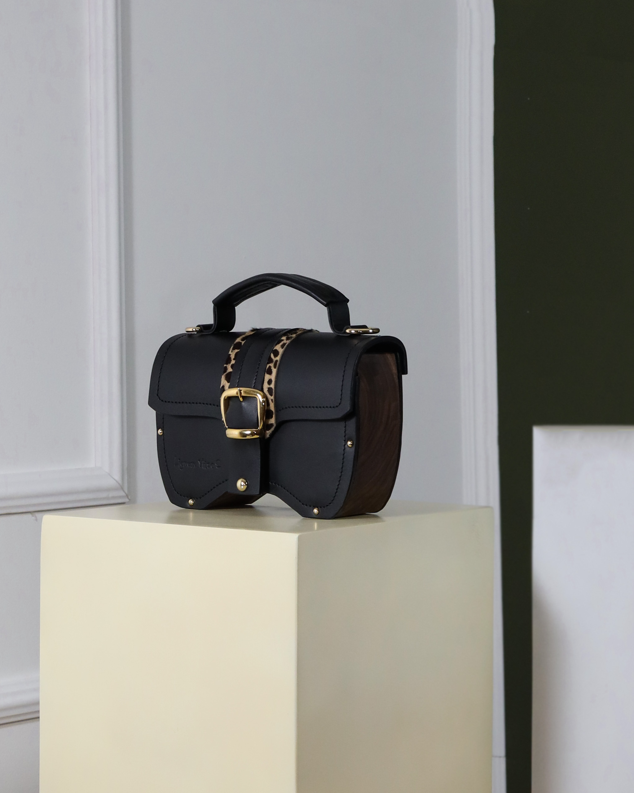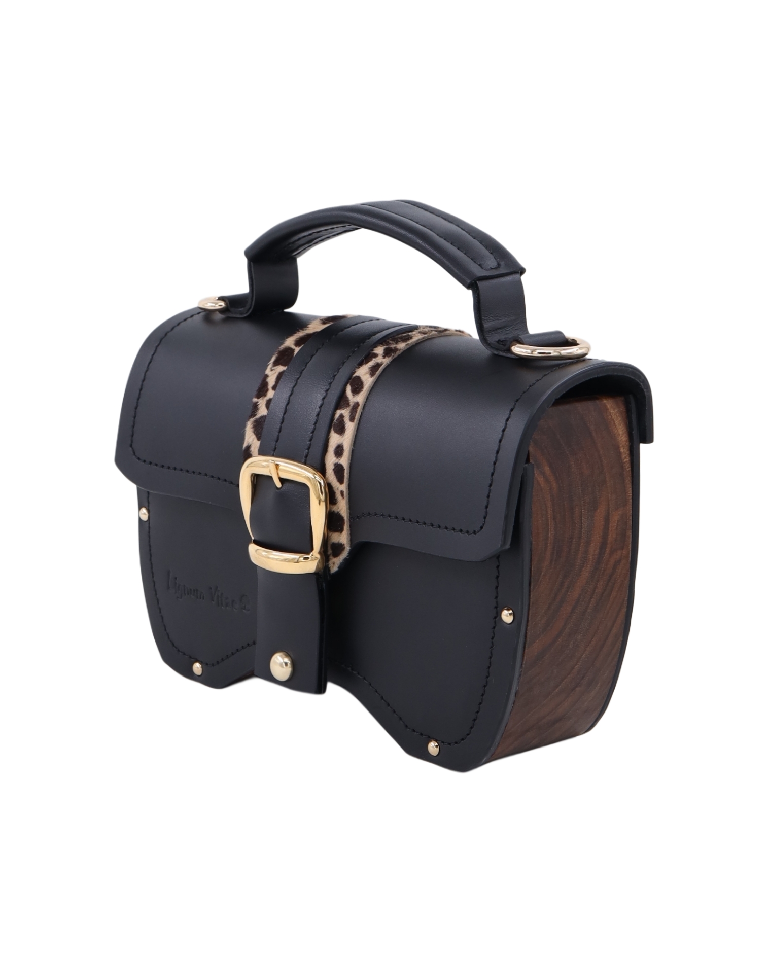 Deo naše timeless kolekcije. Minima, kao sto samo ime kaže, je mala torbice za osnovne stvari i za situacije kada želiš što manje stvari sa sobom i detalj koji će tvoj stil učiniti jedinsvenim. Neobičan oblik i elegantni metalni detalji sa 24karatnom pozlatom čine ovu torbicu jedinstvenim modnim komadom. Šivena ručica je tu tako da se može nositi u ruci ili na ramenu i crossbody pomoću kaiša sa drvenom šnalom za podešavanje dužine.