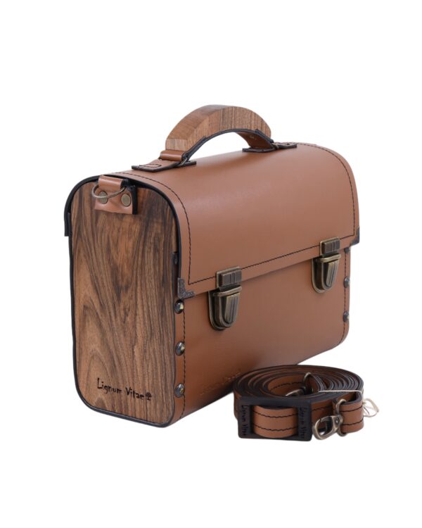 Izradjena je od najfinije, glatke Italijanske kože i komada drveta oraha. Ostali materijali su metalna bravica, šnala i ekserici presvučeni 24karatnim zlatom.