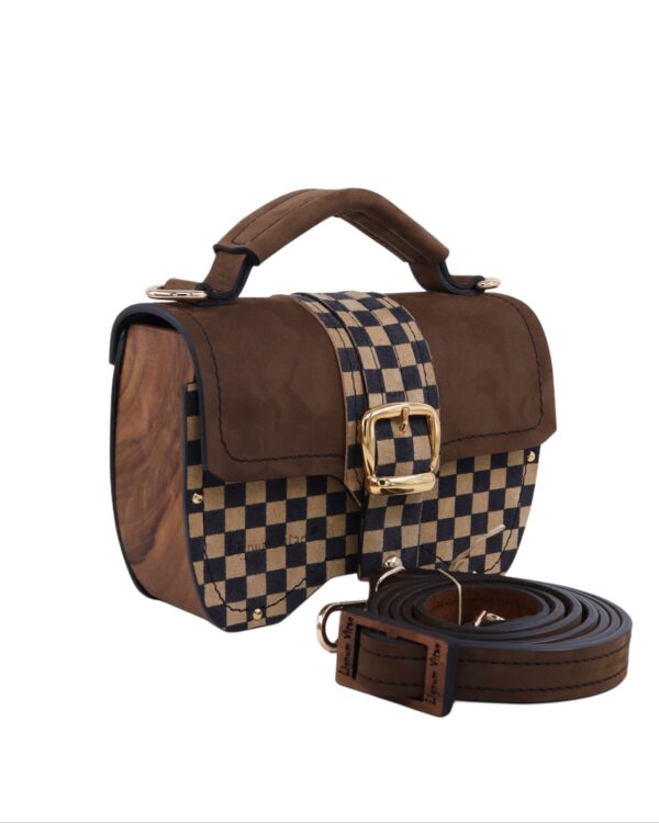 Za sve ljubitelje malih torbica Vanessa je pravi izbor. Izradjena je od čvrste kože i finih komada orahovog drveta u veličini dovoljnoj za vaše osnovne stvari. Delikanti detalji u vidu kaišića sa strane I kombinacija koža-lanac na kaišu čini je univerzalnim detaljem za više kombinacija.