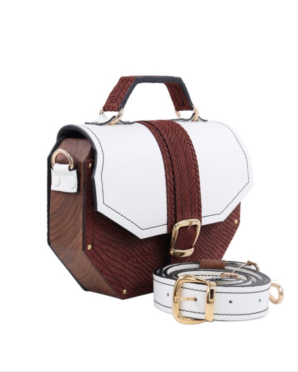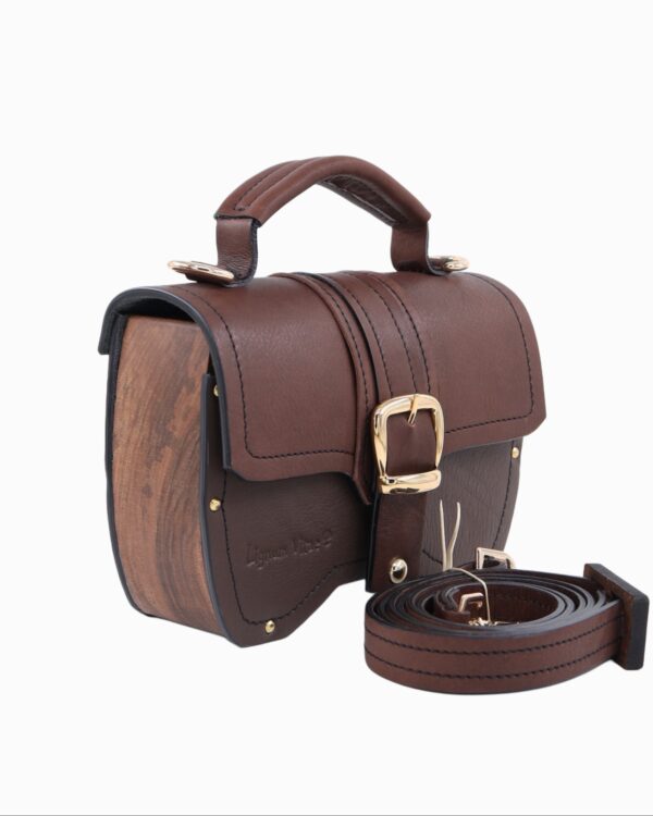 Za sve ljubitelje malih torbica Vanessa je pravi izbor. Izradjena je od čvrste kože i finih komada orahovog drveta u veličini dovoljnoj za vaše osnovne stvari. Delikanti detalji u vidu kaišića sa strane I kombinacija koža-lanac na kaišu čini je univerzalnim detaljem za više kombinacija.