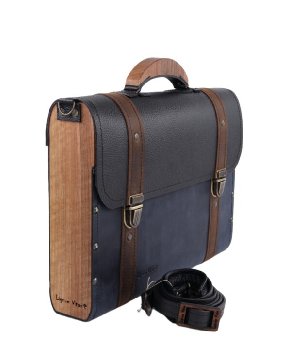 Izradjena je od debele italijanske kože reljefne na donjem delu, pull-up na gornjem i odabranih komada oraha na stranicama. Ostali materijali su metalna bravica, alkice, ekserici i ultra jaki lanac.