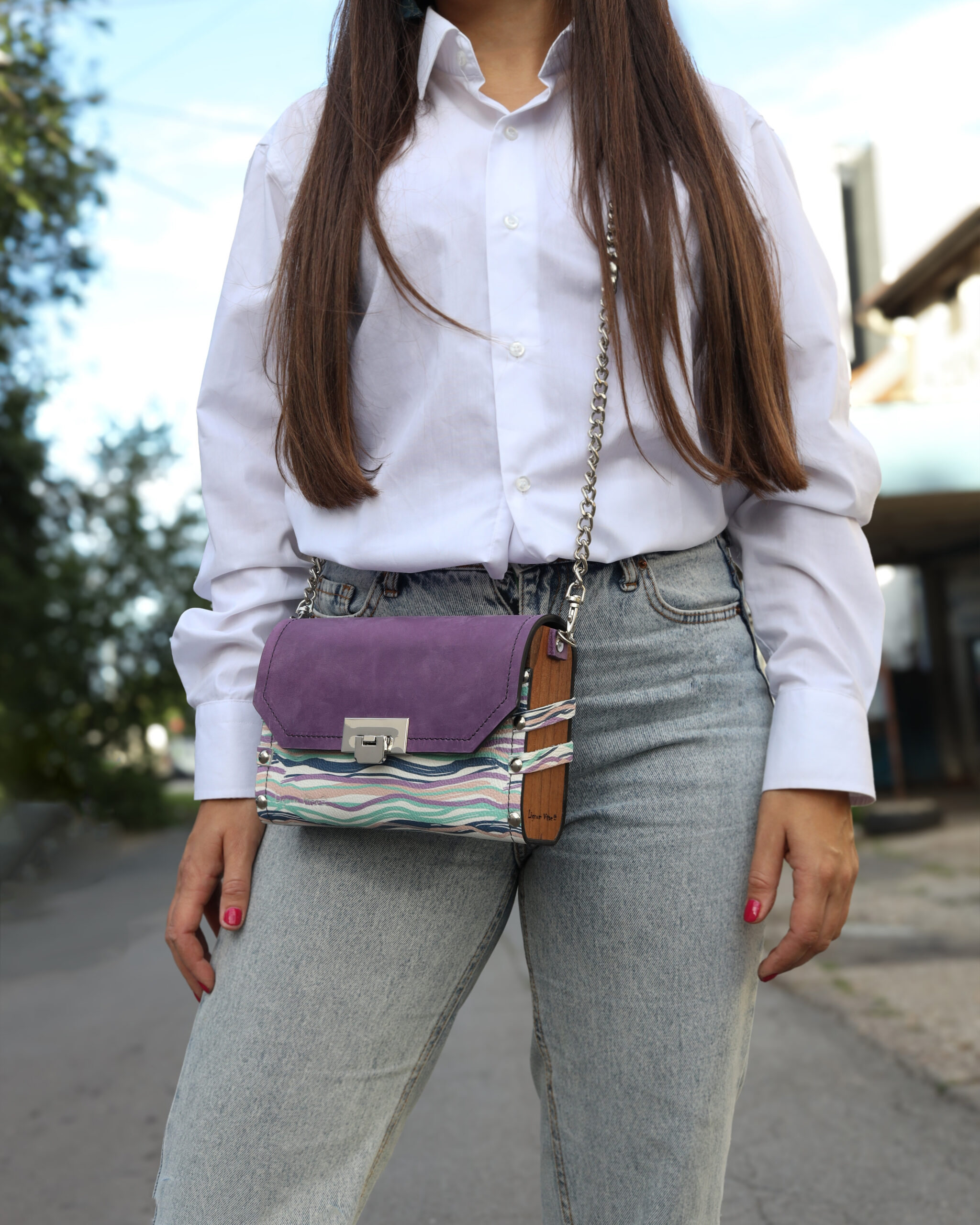 Za sve ljubitelje malih torbica Vanessa je pravi izbor. Izradjena je od čvrste kože i finih komada orahovog drveta u veličini dovoljnoj za vaše osnovne stvari. Delikanti detalji u vidu kaišića sa strane I kombinacija koža-lanac na kaišu čini je univerzalnim detaljem za više kombinacija.